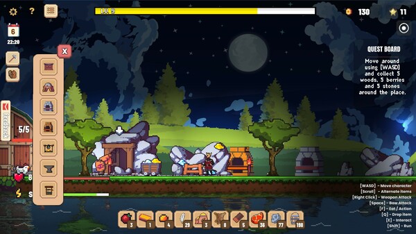 🛠️ Gather & Craft – Chop wood, mine ores, and create workstations and tools to fuel your progress.