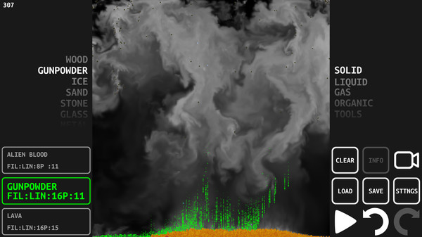 Toz is a falling-sand game with modern graphics and a large selection of elements, lots and lots of brush types and an abundance of special effects. Toz players can import pictures, share their creations in an online gallery, vote and load the creations of other people. The game also allows players to export animations as gif files.