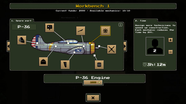 Craft components for airplanes. Choose the component and assign more mechanics to reduce construction time. Never leave the warehouse without spare parts.Key Features