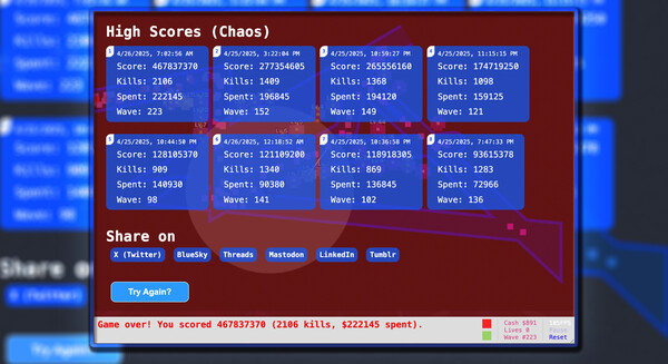 Как последний командующий человечества, ваша миссия — строить и улучшать эволюционирующие турели, использующие адаптированную вражескую технологию, чтобы отложить неизбежное вымирание человечества, хотя бы еще на некоторое время.