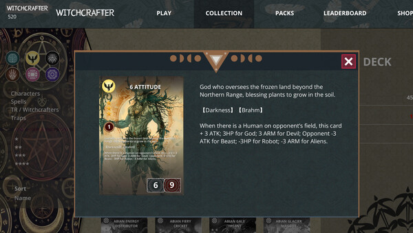PvP & Single-Player Modes – Explore the spiritual essence of Witchcrafter and uncover the legends behind every card.