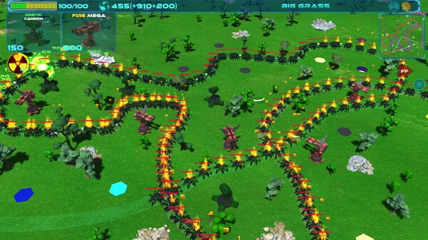 Ten different types of towers - long-range/short-range, AOE or single target, shoot slowly or quickly. You choose your arsenal. There are also five types of damage - physical, fire, frost, poison, and lightning - with different effects. Frost slows enemies, fire burns, etc.
