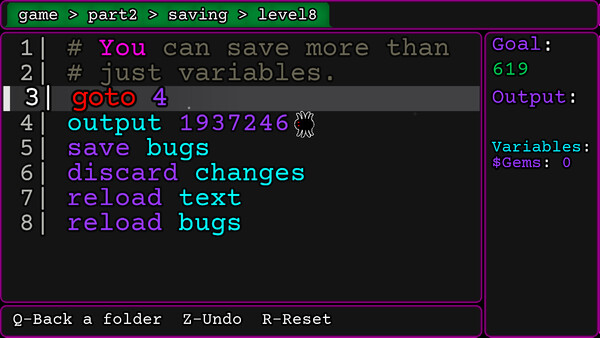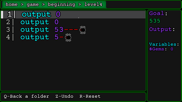 Игра-головоломка о программировании, где баги пожирают ваш код! Одна проблема: ВЫ НЕ МОЖЕТЕ ПЕЧАТАТЬ. Перемещайтесь по существующим строкам кода и запускайте их, чтобы ваш вывод соответствовал цели!