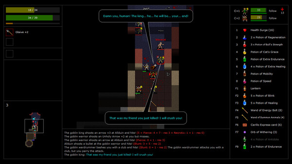 Zorbus is a fantasy-themed, tile-based, turn-based, traditional roguelike game. Your goal is to delve deep into a dungeon, find a portal to a mythical place called the Zorbus, where a mere mortal can ascend to demigodhood. You can recruit other creatures along the way so you don't have to adventure alone.